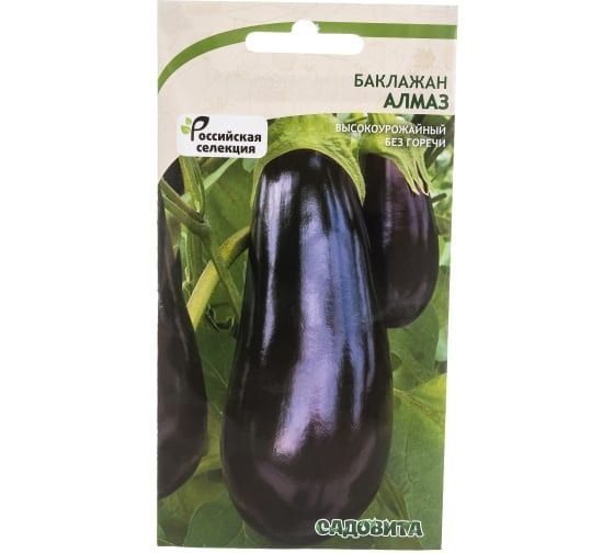 Семена набор баклажан Алмаз средне-ранний от фирмы Партнер - 0,5г.семян. Сорт среднеспелый. От всходов до созревания проходит 110-120 дней. Растение компактное, высотой 50-60 см. Плоды удлиненно - цилиндрической формы, длиной до 20 см, диаметром 6-8 см. Окраска плода в технической спелости тёмно - фиолетовая. Чашечка без шипов. Мякоть зеленоватая без горечи масса плода - 100-180 г. Характеризуется длительным периодом плодоношения, низкорослые. Предназначен для всех видов переработки, на зиму, имеет высокие технологические качества, в кулинарии - прекрасный вкус жареных блюд консервов сотэ икры соленых и маринованных баклажанов. Сорт устойчив к вирусу томатной мозаики (ToMV), толерантен к столбуру (PhLO). Является одним из самых популярных и универсальных сортов баклажана, наиболее широко используется в товарном производстве и в личных подсобных хозяйствах, для теплиц, парников. Плотность посадки - 3 растения/м2. Урожайность в открытом грунте - 6 -7 кг/м2, в защищенном - свыше 8 кг/м2. Идеальный выбор овоща дл