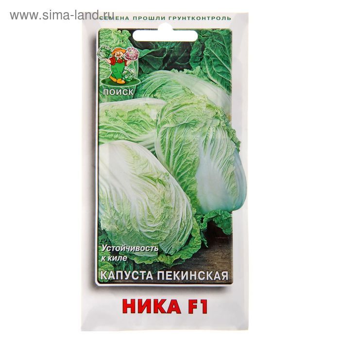 Семена капусты «Ника» — позднеспелый гибрид. Семена дают высокий урожай и крупные выравненные кочаны с отличным вкусом. Период от всходов до начала технической спелости составляет 70 дней. Розетка листьев вертикальная. Лист среднего размера, зелёный, морщинистый, с сильным восковым налётом. Кочан растения имеет широкоэллиптическую форму. На разрезе он жёлтый и плотный. Масса кочана достигает 2?3 кг. Сорт устойчив к киле и цветушности. Рекомендуется для использования в свежем виде, для квашения и краткосрочного хранения (три месяца).