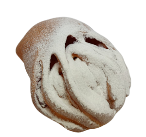 Состав: мука пшеничная в/с, вода питьевая, начинка фрук. термост. клубника, сахар, маргарин, дрожжи прессов. ""Рекорд"", масло растительное, нетающ.сахарная пудра, соль, ванилин, мажимикс. Пищевая ценность в 100 г продукта: Жиры: 8,99 г, Белки: 5,58 г, Углеводы: 34,44 г, Калорийность: 241 ккал.
