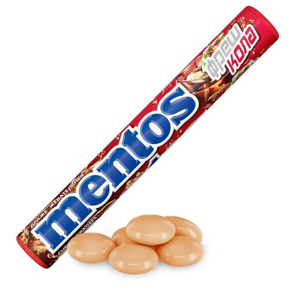 Жевательные драже Mentos Фреш Кола - это легендарное сочетание любимых драже с бодрящими нотками колы. Дарит уверенность в себе и вдохновляет на свежие идеи. Компактную упаковку удобно брать с собой: ролл легко помещается в кармане, рюкзаке или сумке.