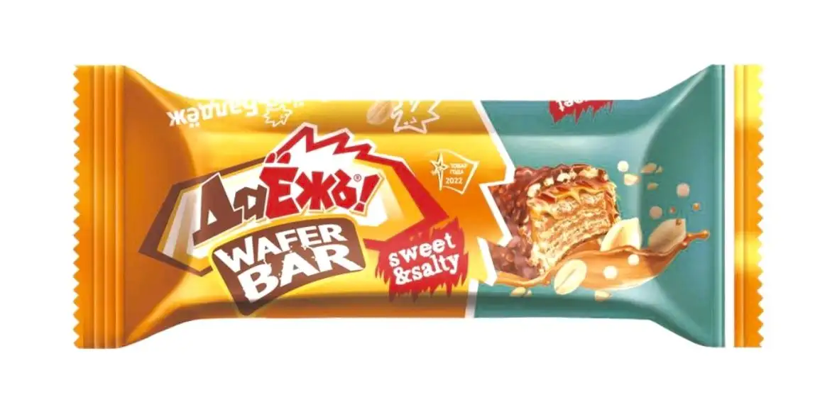 Вафельная глазированная конфета ДаЁжъ! - это оригинальная конфета по своей технологии, которая создаёт гармонию хруста нежной вафли, вкуса мягкой тягучей карамели и питательного дроблёного арахиса. Внешний вид конфеты напоминет колючего ёжика из-за выступающих кусочков криспи и арахиса.