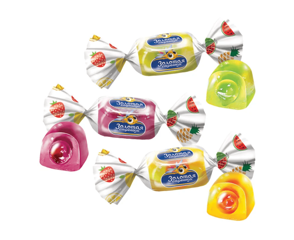 Нежные желейные конфеты с фруктовым ассорти вкусов Золотая стрекоза от КДВ. Они станут отличным выбором для десерта на любом празднике или просто как сладкое угощение для всей семьи! Подарите себе возможность насладиться этими эксклюзивными конфетами желейными, которые точно заслуживают вашего внимания! Конфеты желейные с начинкой. Ассорти вкусов: апельсин, лимон-лайм, клубника-банан, вишня, ананас, арбуз. Мармеладки с натуральным соком, на природном загустителе из водорослей.