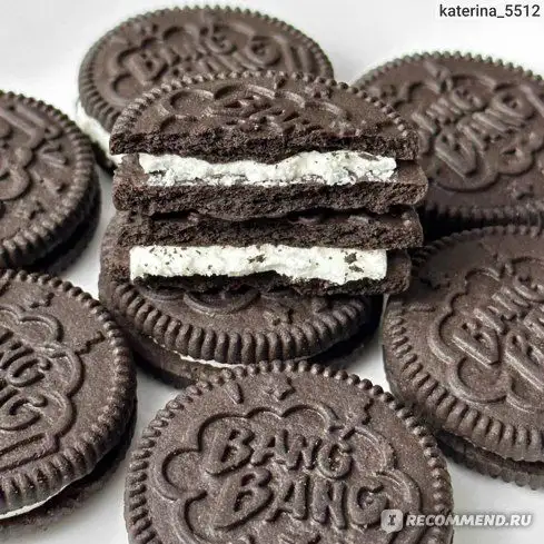Шоколадное печенье сэндвич с молочной начинкой. Печенье отлично подойдет для теплого семейного чаепития, а также в качестве небольшого перекуса. Дома и в офисе оно сделает перерыв слаще и поможет зарядиться отличным настроением. Печенье "BANG-BANG" - это отличный способ побаловать себя, своих близких и коллег, а также друзей, детей.