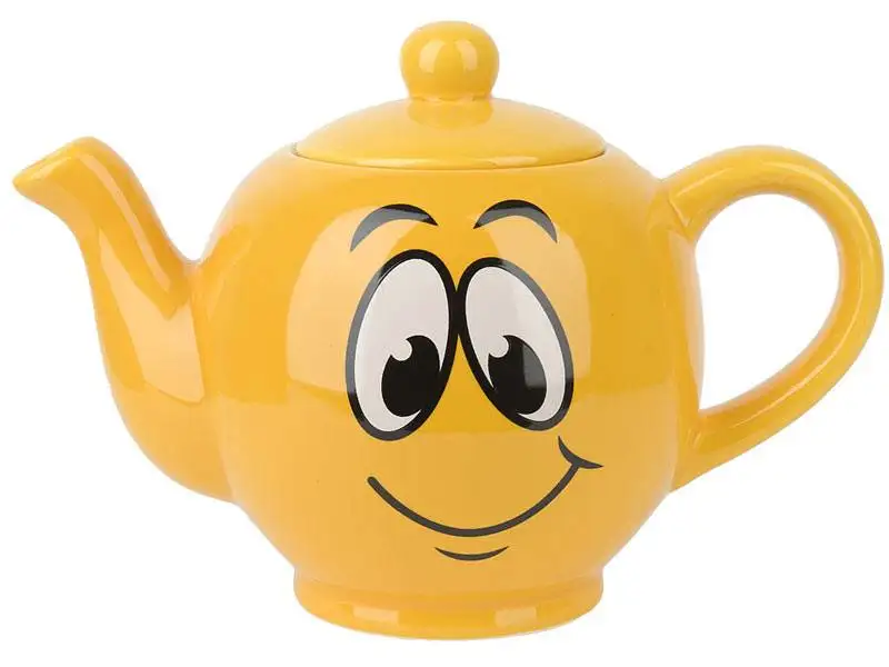Позвольте себе наслаждаться любимым чаем в приятной обстановке с этим заварочным чайником объемом 1 литр. Его яркий желтый цвет и веселый дизайн с улыбкой создают атмосферу уюта и хорошего настроения в любом доме или офисе. Идеально подходит для приготовления различных видов чая и легко моется, что обеспечивает долговечность и практичность в использовании. Этот керамический чайник удобно держать в руке благодаря небольшой ручке и носику, позволяющему наливать чай без капель. Его глянцевая поверхность придает изделию эстетичный вид и легко очищается В носике чайника отсутствуют отверстия, которые задерживают чаинки.