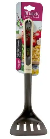 Безопасный термостойкий пластик выдерживает температуру до 210°C. Длина - 29,5 см. Размеры рабочей поверхности толкушки: 9,5 х 7,5 см. В ручке предусмотрено отверстие для подвешивания. Можно мыть в посудомоечной машине. Не рекомендуется оставлять на раскаленной поверхности.