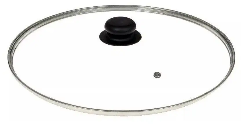 Металлический обод защищает крышку от царапин и сколов и не повреждает антипригарную поверхность на стенках изнутри. Эргономичная ручка предотвращает выскальзывание из рук. Для комфортной готовки пищи конструкция предусматривает наличие отверстия на стекле, служащего пароотводом. Это позволяет не приподнимать край крышки во время готовки, ведь пар будет выходить через отверстие. Можно мыть в посудомоечной машине.