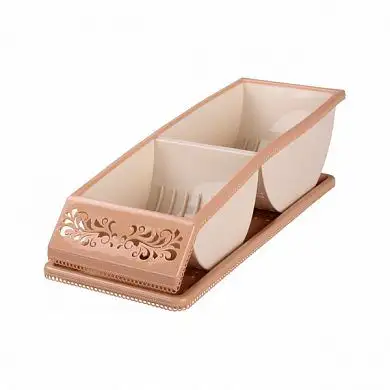 Изделие предназначено для сушки посуды и столовых приборов. Сушилка разделена на две секции и рассчитана на тарелки разного диаметра. Благодаря своим размерам такая сушилка легко поместится рядом с раковиной на маленькой кухне. Поддон позволяет собрать стекающие капли и защитить поверхность стола или полки от влаги. Оригинальный дизайн и приятная цветовая гамма отличают данную сушилку от аналогичных.