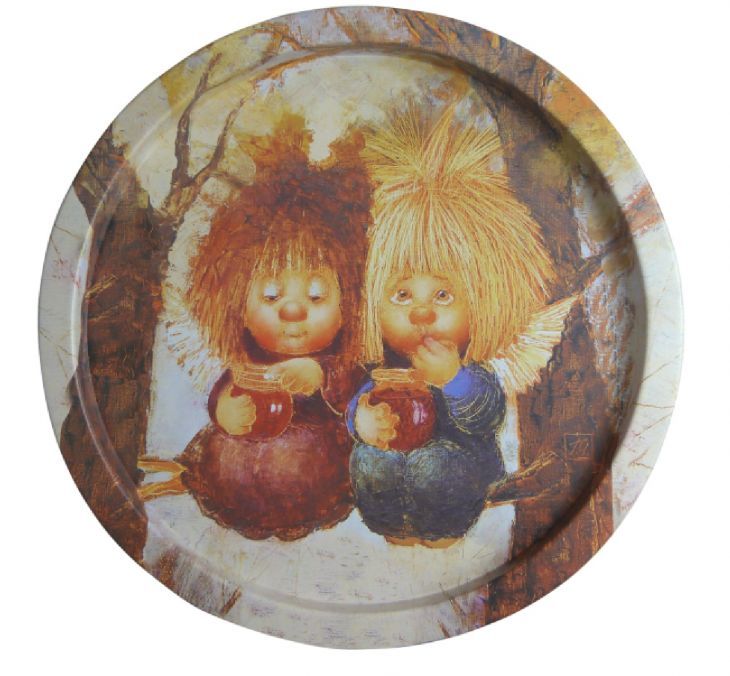 Подносы сервировочные из белой жести литографированные - всегда вызывают интерес, привлекают внимание и пользуются большим спросом покупателей. Жесть - это очень удачный материал для предметов хозяйственно-бытовой направленности, отличается целым рядом выгодных преимуществ: - -практичность и долговечность, -прочность и удароустойчивость, -безопасность в использовании и экологичность, -литография придает оригинальность, -индивидуальность и делает приятным в употреблении. Поднос предназначен для декора стола. Используется для разноса и приема пищи. Солнечные ангелы несут уют и добро в каждый дом. Авторская работа Г. Ю. Чувиляевой материал - Жесть белая пищевая с литографией диаметр 28 см высота 1,6 см толщина материала - 0,32 мм Производитель Gala Белоруссия