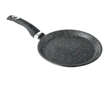 Блинная сковорода с антипригарным покрытием – литая алюминиевая посуда, которая подходит для газовых, электрических и стеклокерамических плит. При минимальном использовании масла получаются тонкие блины и пышные оладьи. «Гранит». Коллекция «мраморной посуды» с улучшенным четырёхслойным антипригарным покрытием. Дополнительный слой с мраморным эффектом увеличивает износостойкость и создаёт оригинальный оттенок чёрного мрамора. Литой пищевой алюминий - без канцерогенных веществ и посторонних запахов. Материал долговечный, не поддается деформации. Толстые стенки и утолщенное дно обеспечивают равномерное распределение тепла.