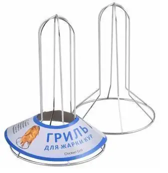 Гриль для жарки кур используется для равномерного запекания мяса, придавая ему неповторимую сочность и аромат. Просто разместите гриль на противне или специальной форме, закрепите тушку на металлическом каркасе и отправьте в духовку, чтобы достичь идеального запеченного результата. Гриль изготовлен из стальной хромированной проволоки, которая обладает высокой гигиеничностью и стойкостью к высоким температурам. Его диаметр составляет 15 см, а высота - 21 см, обеспечивая достаточно места для жарки кур различного размера.