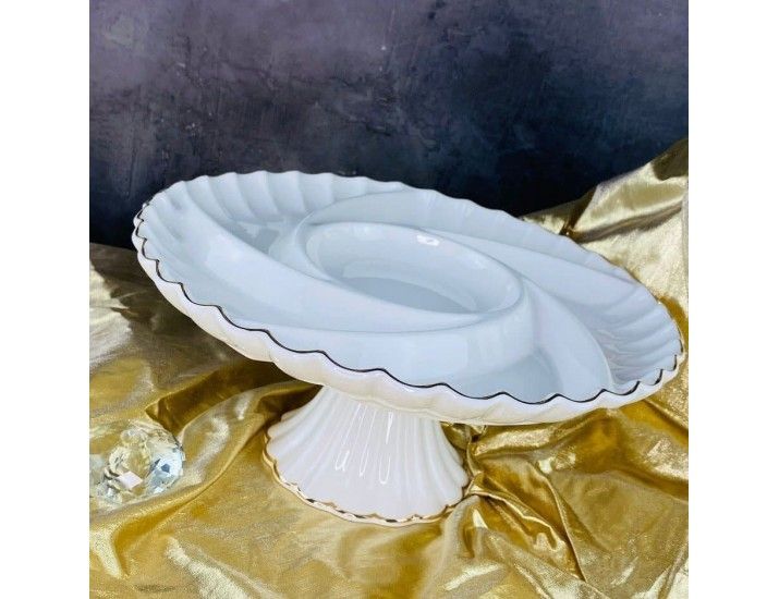 Коллекция MARGARITA выполнена из белоснежного фарфора. Коллекцию отличает Изящный и нежный дизайн формы, в виде ромашки с золотой окантовкой. MARGARITA состоит из предметов сервировки и тарелок. Упаковано в подарочную коробку Материал: фарфор Не рекомендуем использовать в микровлновой печи и мыть в посудомоечной машине