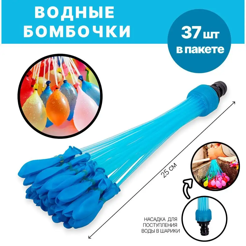 Охладись быстро и весело! Закрепи к шлангу, залей водой и ПУЛЯЙСЯ!Набор водяных бомбочек 37 штук /Tongde/ способен добавить веселья в любой жаркий летний день, а также значительно разнообразить войнушку на водяных пистолетах. От того, что водяные бомбочки так просто устроены, забава от игры ими ничуть не уступает игре водными бластерами и будет интересна и мальчишкам и девчонкам! Водяные бомбочки это совершенно безопасное оружие, которое подарит море ярких впечатлений и способствует активному времяпровождению ребёнка!