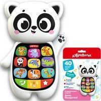 Необычный музыкальный смартфончик для малыша – в виде забавной Пандочки! Нажимая на кнопочки-иконки, ребенок послушает песенки про животных фермы, модные рингтоны и сможет поиграть в две увлекательные игры: Игра «Весёлый телефончик» – малыш сможет звонить Панде и его друзьям, и зверюшки ответят ему. Игра «Загадайка» – ребенок будет отгадывать загадки и угадывать голоса зверят.