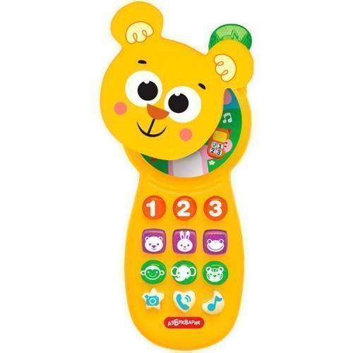 Музыкальный телефончик Мишутка Азбукварик 3136. Большой телефончик для малышей в виде милого мишутки с музыкальными кнопочками! Нажимая на кнопки, ребенок познакомится с цифрами, послушает 6 песенок про зверят, песенку про телефон, оригинальные рингтоны и другие звуки! На кнопочках мигают огоньки – это дарит ощущение праздника! Подвижная крышечка делает телефон еще более крутым и интересным. Музыкальный телефончик «Мишутка» поможет в развитии музыкальных способностей (песенки можно подпевать), мелкой моторики и тактильных ощущений (благодаря подвижным элементам и выпуклым кнопочкам разной формы), а также воображения – ведь ребенок сможет как бы «звонить» тигренку и другим зверятам и разговаривать с ними! Особенности: - 20 песенок, мелодий и звуков; - подвижная крышечка.