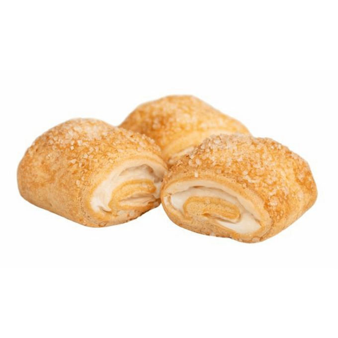 Состав: мука пшеничная в/с, вода питьевая, яйцо, творожная начинка с изюмом, маргарин для слоеного теста, молоко, маргарин, сахар, масло растительное, дрожжи прессов. ""Рекорд"", соль, кунжут семена, мажимикс, ванилин Пищевая ценность в 100 г продукта: Жиры: 29,7 г, Белки: 6,6 г, Углеводы: 55,4 г, Калорийность: 515,3 ккал.