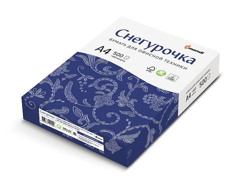 «Снегурочка» — эталон универсальной офисной бумаги марки «С», рекомендуется для повседневной печати на современной офисной технике. Её белизна и непрозрачность, идеальная точность формата каждого листа обеспечивает безукоризненную качественную печать.  Бумага СНЕГУРОЧКА марки «С» в соответствии с ГОСТ Р 57641-2017 используется в офисах как для печати повседневных документов, так и для важной официальной документации. Бумага СНЕГУРОЧКА А4 формата считается универсальной, поскольку подходит практически для любого типа офисной техники: лазерных и струйных принтеров, копировальных аппаратов, факсов. Высокий показатель непрозрачности бумаги позволяет осуществлять двустороннюю печать. Сертифицирована по экологическим стандартам FSC и EU Ecolabel. Благодаря своим характеристикам и высокому качеству, бумага СНЕГУРОЧКА завоевала множество поклонников среди большого количества компаний. Оптимальное соотношение «цена-качество» у бумаги этой марки только усиливает ее популярность. СНЕГУРОЧКА может долго храниться на хозс