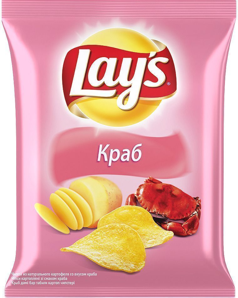 Чипсы из натурального картофеля. Готовы к употреблению. Хрустящие золотистые чипсы Lay`s – это отличное сочетание отборной картошки, растительного масла и вкусовых добавок. Лейс Краб  – настоящее удовольствие для всей семьи! Тонкие хрустящие чипсы LAY`S золотистого цвета имеют выраженный вкус молодого лучка, который приобретают благодаря добавлению ароматических веществ. Чипсы Лейс быстро утоляют чувство голода, поэтому подходят для перекуса в течение дня. LAY`S удобно брать с собой в дорогу, на прогулку или на занятия. Чипсы Лейс можно использовать в кулинарии при приготовлении салатов и закусок. Вакуумная упаковка Лейс способствует сохранности продукта без дополнительных консервантов.